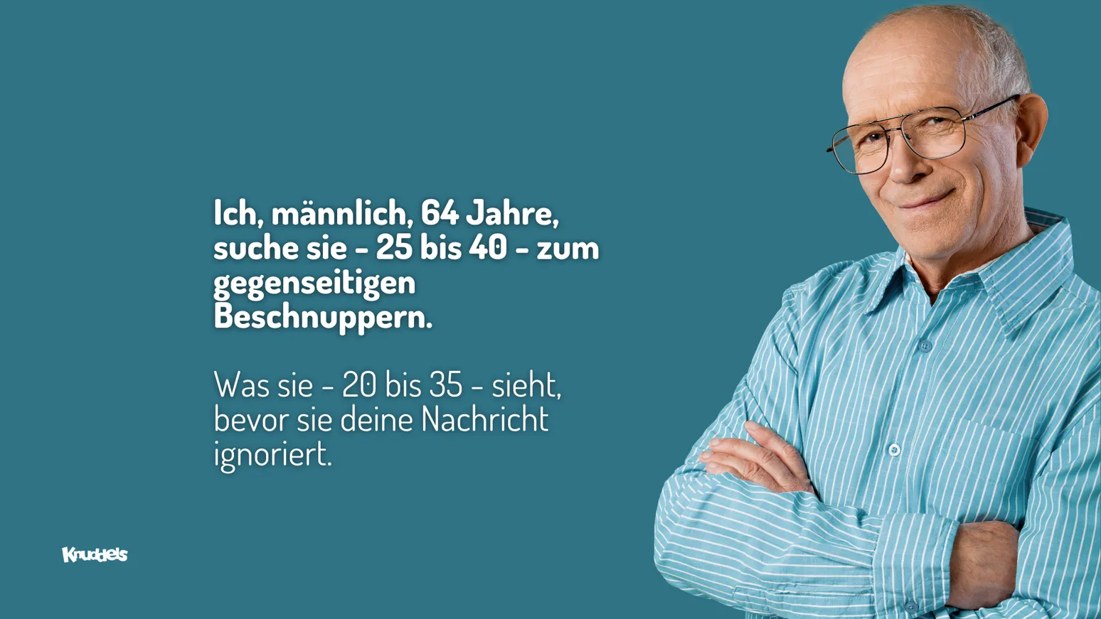 Viele Männer machen schon vor der ersten Nachricht einen klassischen Fehler: Sie lesen nicht das Profil der Frau und beschäftigen sich nicht mit Altersunterschieden. Auch, wenn es Gegenbeispiele gibt: Augen auf, liebe Herren! Die allermeisten Paare, die ihr kennt, haben einen Altersunterschied von maximal 10 Jahren. Das heißt, wer Mitte 60 ist, schreibt bitte nicht standardmäßig Frauen Mitte 30 oder Anfang 40 an. Das ist nicht unfair, sondern natürlich. Auch wenn einem die Jugend meist verwehrt bleibt, ist der Weg zu Liebe, Zuneigung, Erotik, Spaß und einer tollen gemeinsamen Zeit nicht verbaut, nur weil der Partner ungefähr so alt ist, wie man selbst. Es lohnt sich also sehr im eigenen Alterspool mit plus Minus 10 Jahren zu schauen. So manche große Überraschung dürfte da den ernsthaft Suchenden treffen.